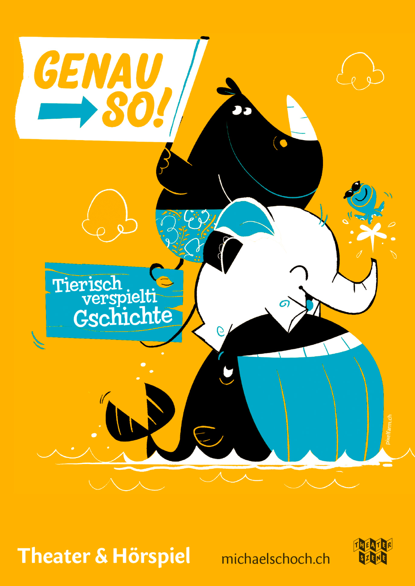 Depuis des décennies, ce théâtre pour toute la famille enchante petits et grands au Rosenweg 36 à Berne. Ses productions maison sont mises en scène avec une simplicité créative. Nous réalisons les illustrations des productions théâtrales sous forme de séries de cartes postales et d'affiches. Nous mettons délibérément les animaux en vedette sur scène.