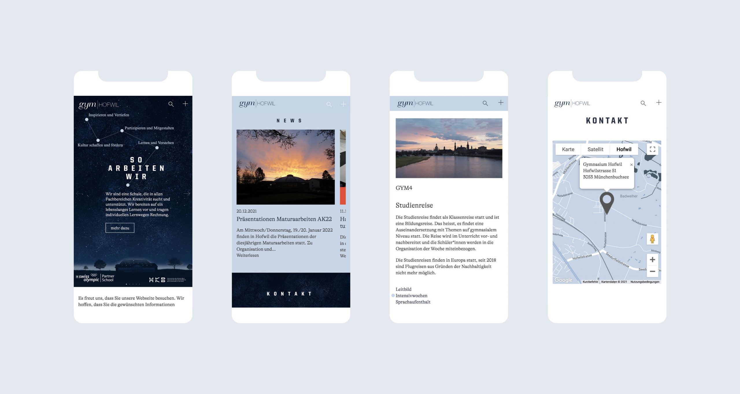 Das Hofwil ist ein traditionsreiches Gymnasium, eingebettet in eine idyllische Ländlichkeit ausserhalb von Bern. Mit dem Bild der Sternkarte soll diese leicht romantische Abgeschiedenheit, aber auch das Wegsuchen und Nach-den-Sternen Greifen der jungen Menschen, die sich für ein Gymnasium entscheiden, veranschaulicht werden.
