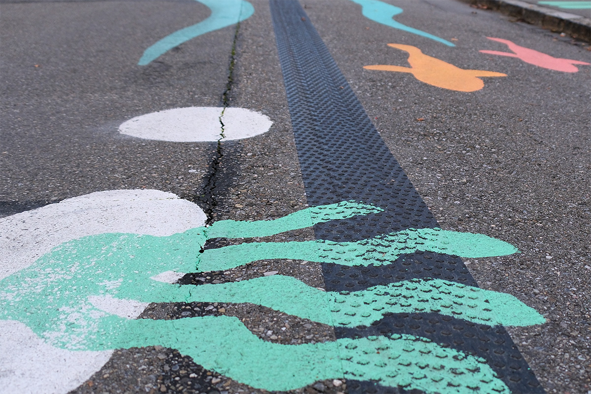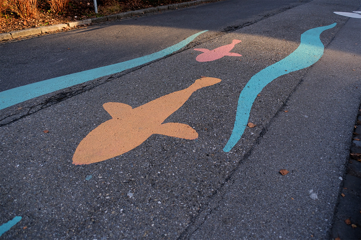 Die Elisabethenstrasse und Wylerfeldstrasse in Bern werden zur neuen Begegnungszone. In Zusammenarbeit mit der Stadt Bern durften die Anwohner:innen am 30. August 2025 ihre Strassen bemalen. Wir haben zwei Designkonzepte zur Abstimmung ausgearbeitet. Gewonnen hat «die Aare und ihre Bewohner:innen». Mit diesem Design werden die Strassen zu einer lebendigen und naturnahen Erlebniswelt. Die Bedeutung, welche die Aare für die Stadt Bern Bern hat, wurde hervorgehoben uns ins Wylerquartier übertragen. Für den Aktionstag haben wir die Illustrationen ausgearbeitet, das Farbkonzept definiert und die Schablonen aufbereitet, sodass die Anwohner:innen die Designs selbständig applizieren konnten.